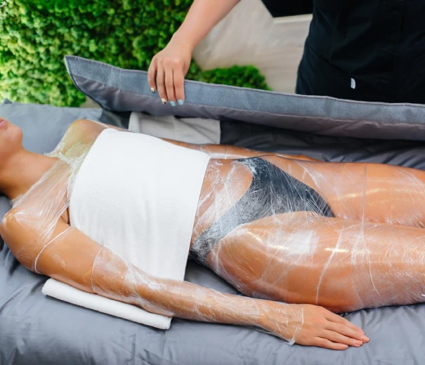 Eliminate toxins and excess fluids with our mineral-rich body wrap. This treatment helps reduce inches while deeply cleansing your pores.