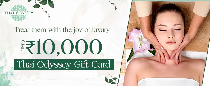 Exclusive offers – Gifting an experience at the Thai Odyssey Spa is a great way to care for your near and dear ones, with something that will leave them feeling great! You can choose from any of the varied experiences and therapies that we offer. You can choose to gift Upto ₹10,000 that can be exchanged for services, or choose a specific service to gift.